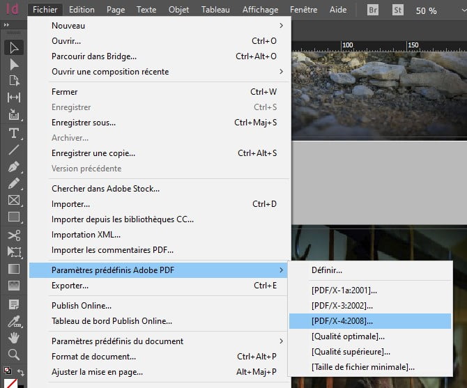 Utilisez le menu Fichier/Paramètres prédéfinis Adobe PDF :