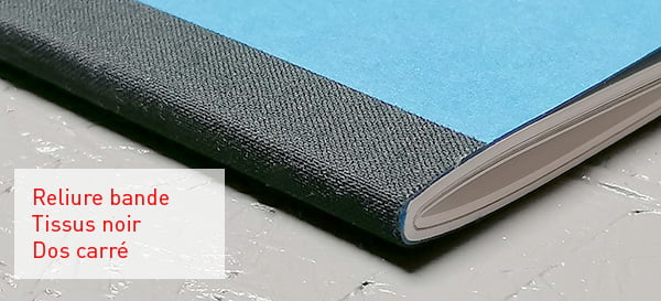 La reliure avec bande de tissus, pour masquer les agrafes, c’est la reliure de notre Carnet de Voyage, elle renforce la reliure et donne un aspect de carnet plus classe!